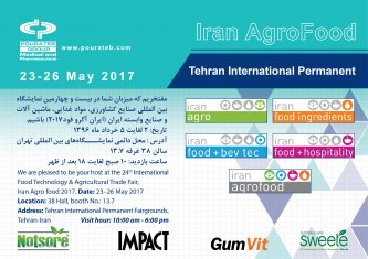 بیست و چهارمین نمايشگاه بين المللی صنايع کشاورزی، مواد غذائی، ماشين آلات و صنايع وابسته - ايران آگروفود 2017 ، از تاریخ 2 تا 5 خرداد ماه 1396 توسط شرکت پالار سامانه و همکاران خارجی آن با اخذ مجوز از سازمان توسعه تجارت ایران و با همکاری شرکت سهامی نمایشگاههای بین المللی ج.ا.ایران براي بیست و چهارمین سال متوالي در محل دائمی نمايشگاههای بين المللی تهران برگزار خواهد شد.